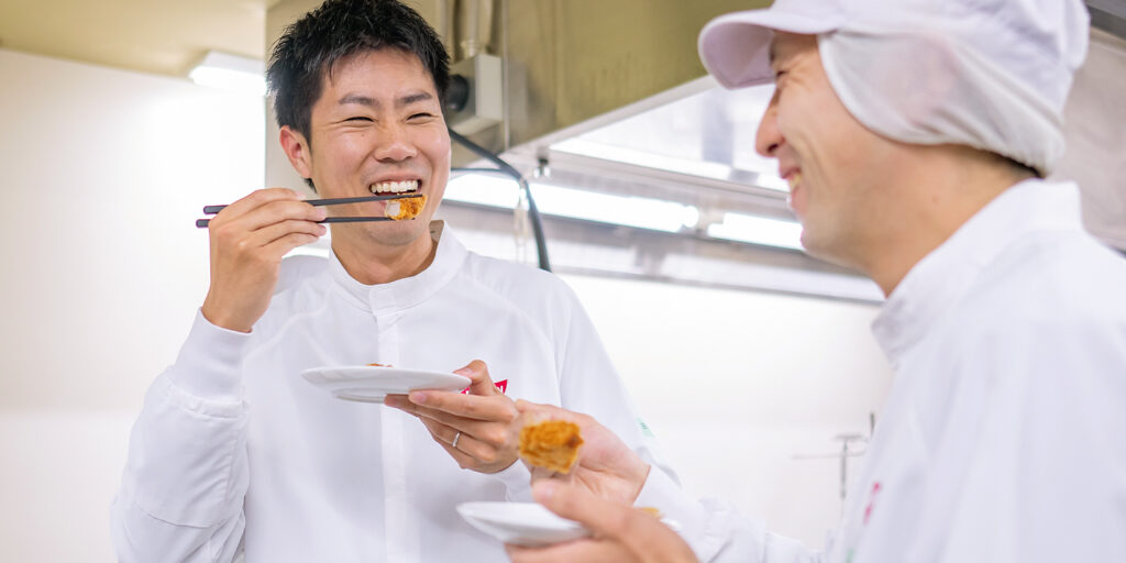 いま手がけているのは、これまでの商品とは全く異なる新ジャンルの揚げ物商品です。全く新しいものを出そうとすると、社内でも拒否感が出ることがある。そこを、営業の方に「売ってみたい」と思ってもらえるように、工場の方に「作ってみようか」と思ってもらえるように、丁寧に提案していく。そのプロセスで、人間関係の作り方と巻き込み力が鍛えられている実感があります。